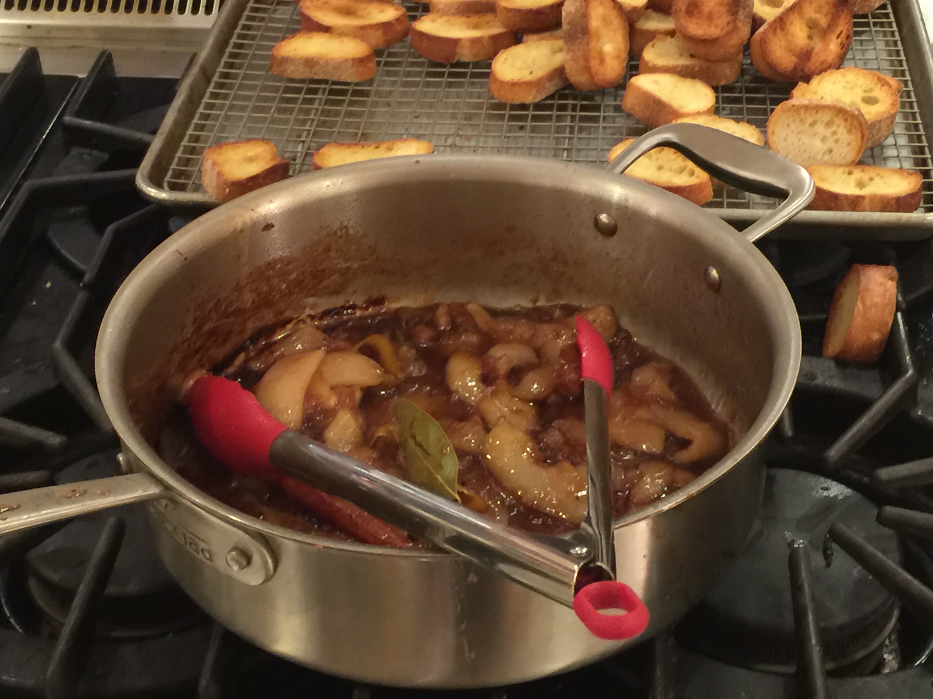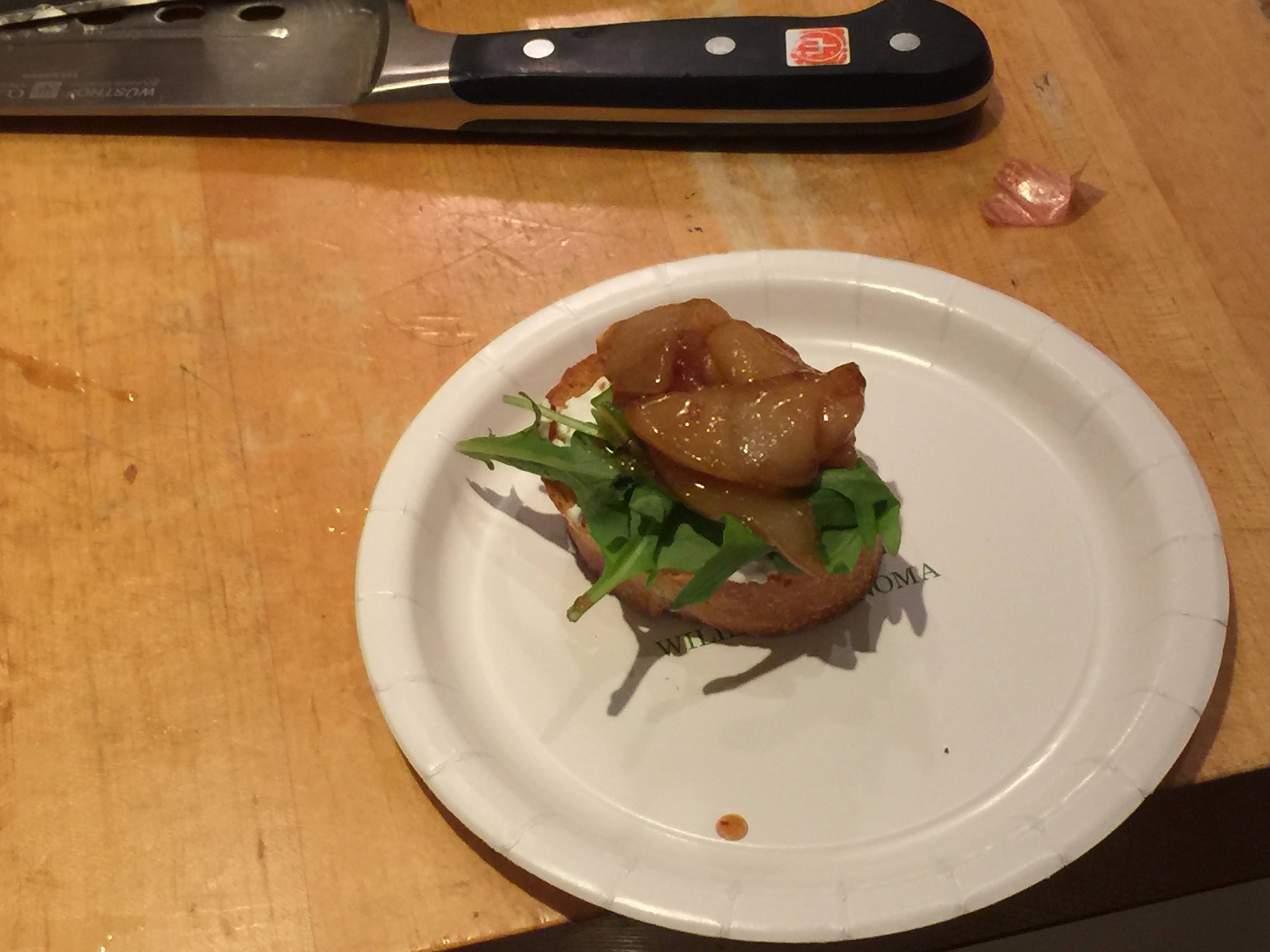 In this class we learned to use Humboldt Fog, a subtly tangy California goats’-milk cheese with a beautiful gray-blue line of ash running through it, is the perfect counterpoint to a mildly sweet chutney made from fresh pears. If you can’t find Humboldt Fog cheese, try Morbier, a French cow’s milk cheese, or a fresh California goats’-milk cheese. The chutney can be prepared a few days in advance and stored in the refrigerator until you are ready to assemble the crostini.
